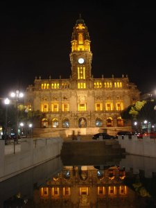 Fim de jornada na Avenida dos Aliados, a apreciar a iluminação do edifício da Câmara, antes do merecido descanso.