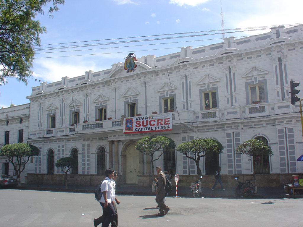 Sucre é a capital constitucional e judicial da Bolívia, enquanto que La Paz é a capital administrativa do país. Se isso na prática tem alguns resultados positivos ou não, não faço a mínima ideia. O que sei é que por Sucre se vêem mensagens em tarjas em muitos edifícios com a inscrição “Sucre plena” e por La Paz veria mais tarde outras inscrições contrarias exigindo a manutenção dos poderes naquela que nós temos ideia ser a cidade mais importante da Bolívia.