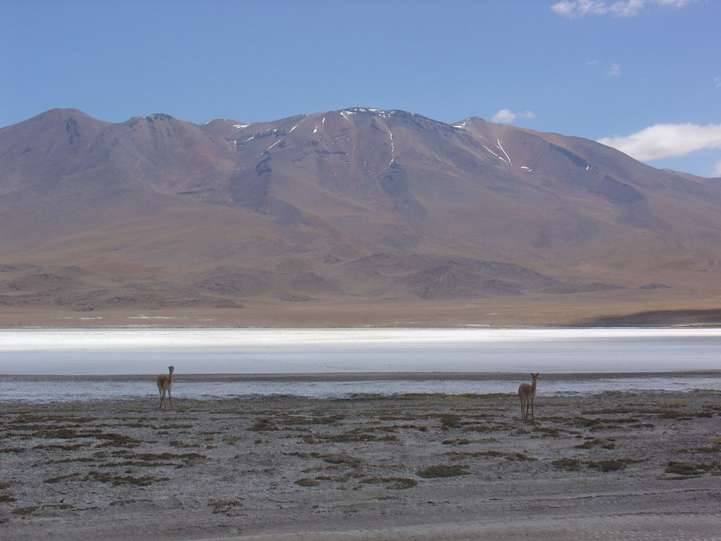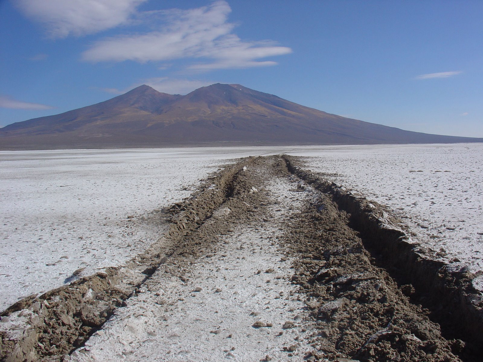 Depois do pedido (5 bolivianos = 0,50 euros) para nos ligarem o esquentador, tomámos uma banhoca quentinha no anexo da casa – um luxo que não teríamos nos próximos dois dias. Saímos de San Juan em direcção ao Salar de Chiguana, ali bem perto, com a montanha do vulcão Ollague como ponto de referência para mais uma estrada improvisada como uma linha recta infinita. Este salar não é tão grande nem tem tanto sal como o de Uyuni mas, ainda assim, é expressivo o bastante para nos continuar a deslumbrar.