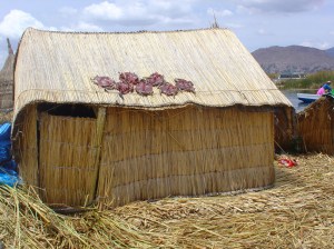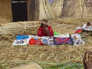 A totora, que inunda a nossa visão, serve para quase tudo. Não só para estabelecer um “chão”, como também para construir as casas deste povo, os seus barcos e, até, como alimento. Que não sabe nada mal, aliás. Depois, claro, somos inundados de solicitações para comprarmos o produto do trabalho dos Uros, artesanato local (feito de totora, é claro) e têxteis (os homens dedicam-se também à pesca, tradicionalmente o principal meio de subsistência desta tribo). E somos, também, convidadas a visitar as suas casas e descobrir que no meio de todo aquele cenário primitivo não falta a televisão – obra dos geradores – para que as senhoras possam assistir ás suas telenovelas.