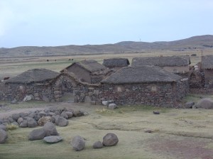 De volta a Puno parámos num dos povoados que vamos vendo no caminho. Um género de quinta murada com cerca de 4 pequenas casas, com um arco na entrada e pátios consecutivos. Tudo muito simples e humilde, funcionando como uma comunidade de pequenas famílias. Aí pudemos observar – e provar – a forma de confecção e aproveitamento de alguns alimentos (batatas, favas, quinoa, queijos, pão frito e outros cereais), bem como a produção de têxteis, principalmente de tapetes.