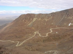 Começámos a manhã pela subida ao Chacaltaya. Convém sair bem cedo, pois a viagem de táxi faz-se em 1h 30m (isto se o taxista não se armar em parvo como aconteceu connosco – estava a ser pago à hora – e não resolver fazer o ainda que péssimo caminho de terra batida a 10km por hora)