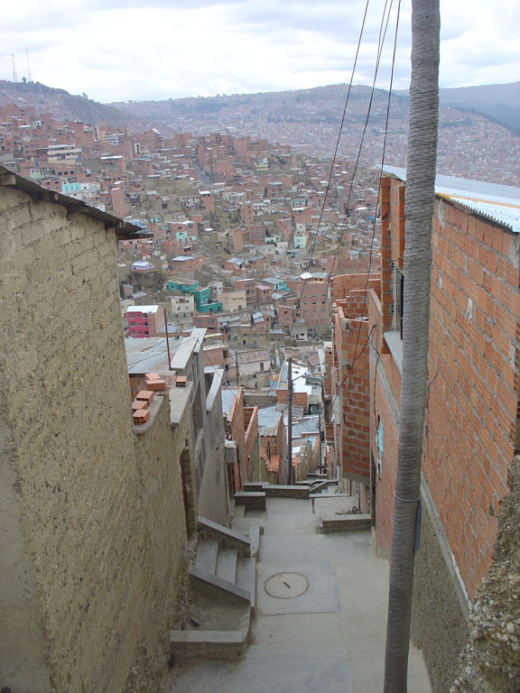 Para El Alto, por exemplo, há que subir bastante e o recorrido a pé ou é feito pela estrada (a levar com razias e a fumarada dos carros) ou pelas escadarias e ruas improvisadas que cercam os prédios dos paçenhos. Ou seja, mesmo que possível, ninguém o faz.