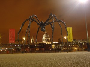 Logo à entrada da colecção de arte contemporânea internacional desta Tate (a de arte nacional fica com a Tate Britain) deparamo-nos com Maman, a aranha gigante de Louise Bourgeois (que tem uma réplica também no Guggheinheim de Bilbao), bem junto ao Rio Tamisa a olhar olhos nos olhos a St Paul´s Cathedral.