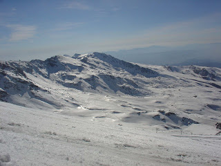 Nos últimos dias não resistimos ir ao sector da Laguna, que é o mais bonito da estância e o que tem maior concentração de pistas vermelhas. As pistas deste sector começam quase no topo do pico Veleta, que é o terceiro mais elevado da Espanha Continental, com 3398 metros. Dizem que deste pico e do Mulhacém, que com 3481 metros é o ponto mais elevado da Espanha Continental, nos dias mais limpos vislumbra-se o Mediterrâneo e Marrocos. Nunca pude comprovar porém as paisagens tangíveis aos meus olhos são suficientemente impressionantes.