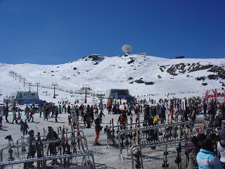 Nos últimos dias não resistimos ir ao sector da Laguna, que é o mais bonito da estância e o que tem maior concentração de pistas vermelhas. As pistas deste sector começam quase no topo do pico Veleta, que é o terceiro mais elevado da Espanha Continental, com 3398 metros. Dizem que deste pico e do Mulhacém, que com 3481 metros é o ponto mais elevado da Espanha Continental, nos dias mais limpos vislumbra-se o Mediterrâneo e Marrocos. Nunca pude comprovar porém as paisagens tangíveis aos meus olhos são suficientemente impressionantes.