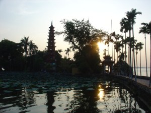 Em Hanói tivemos a sorte de ver parte do pôr do sol no Lago Ho Tay, com o fotogénico pagode Tran Quoc numa das suas margens.