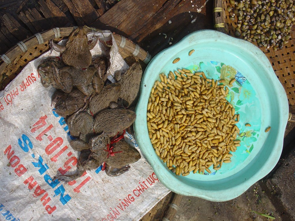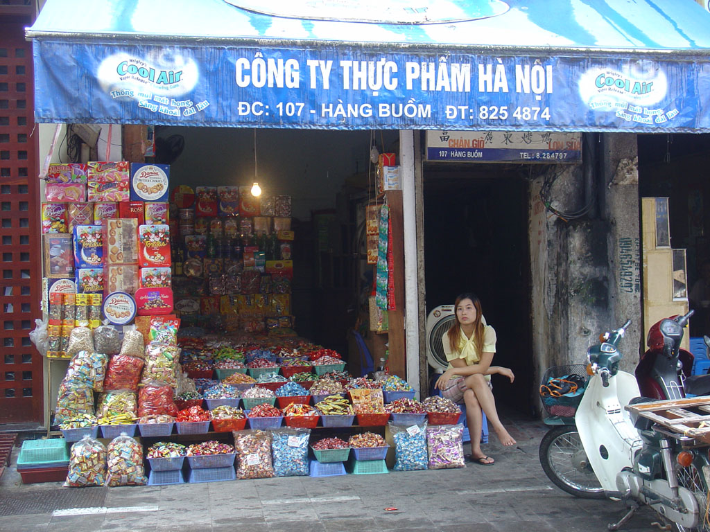 As ruas aqui neste bairro ganham o nome do ofício ou da actividade comercial que aí é explorada. Tudo bem dividido, alguma organização no meio do caos. Aqui fica o mercado Dong Xuan onde caminhamos por entre os vendedores de frutas e legumes variados e coloridos, especiarias, carnes, peixes, rãs e outros “alimentos” que nem suspeitamos o que sejam.