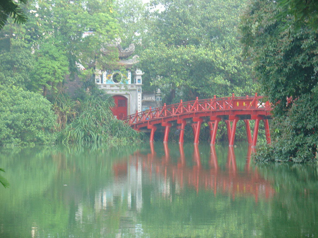 A adornar o lago Hoan Kien temos a Torre da Tartaruga e a ponte vermelha que liga ao templo Ngoc Son. Para uma bela e calma vista deste cenário, o café Pho Co é uma boa aposta com a sua esplanada no último andar. Para se lá chegar temos que entrar por uma galeria e seguir casa e pátio adentro, como se estivéssemos a invadir a privacidade de alguém que não nos é conhecido. Tudo normal por estas bandas.