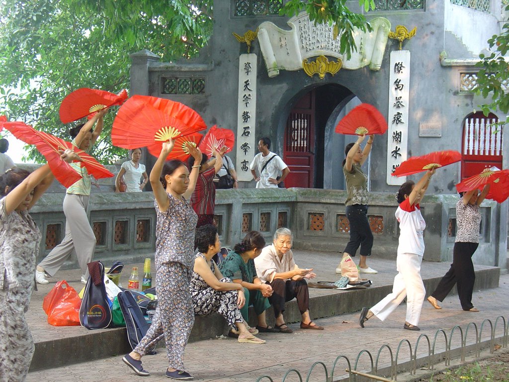 Mais encantador é o Lago Hoan Kiem. Aqui o dia começa sempre cedo, logo ao raiar do sol, por volta das 5:30, com uma multidão a exercitar-se à beira da sua água, caminhando, fazendo tai-chi, meditando, fazendo musculação, jogando badminton ou foot-badminton ou tão somente conversando sentada num banquinho.
