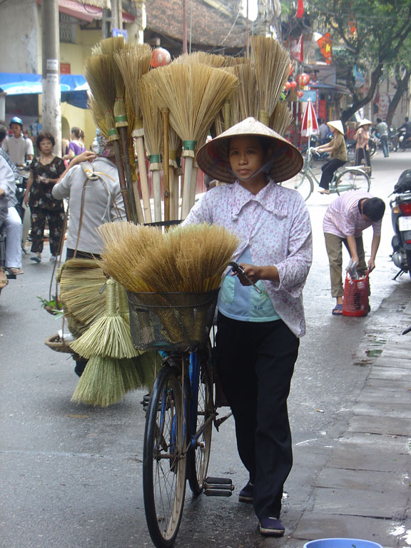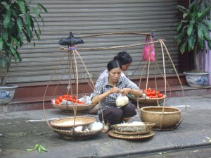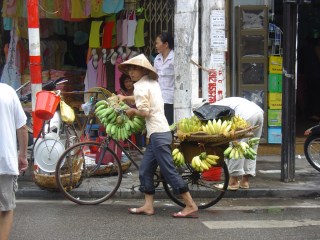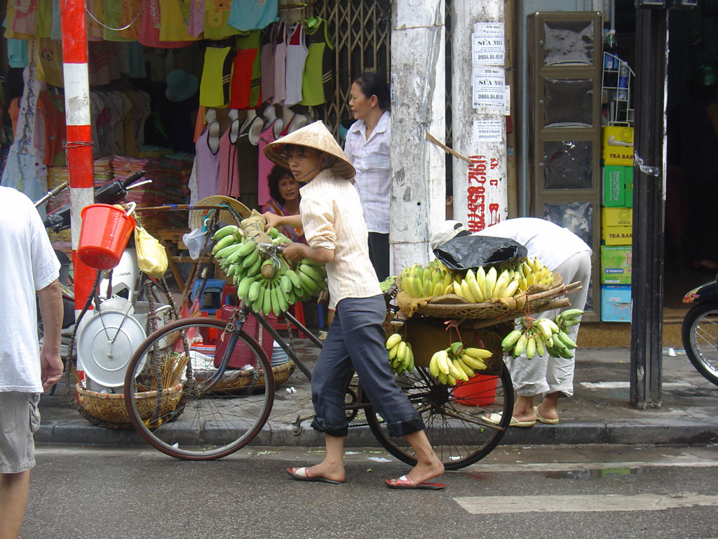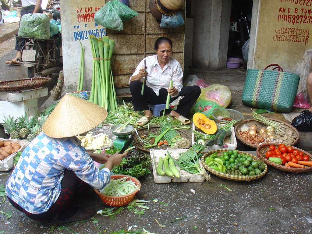 Vendedoras de frutas e legumes nas imediações do mercado Dong Xuan, em Hanói