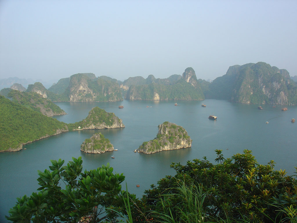 São milhares de ilhas e montes de calcário, pejados de vegetação, com caves enormes e prainhas acolhedoras, que emergem imperialmente das águas de cor de esmeralda do Golfo de Tonkin, no norte do Vietname, a cerca de 3 horas de camioneta de Hanói.