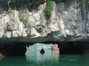Na viagem de 2 dias (muitíssimo mal aproveitada, há que dizê-lo com frontalidade, como dizia o outro, uma vez que se entra no barco às 13:00 de um dia e se deixa o mesmo barco às 11:30 do outro dia), para além de navegarmos pela baia entre as ilhas e montes, visitámos umas caves imensas e inacreditáveis numa das ilhas – Hang Sung Sot.