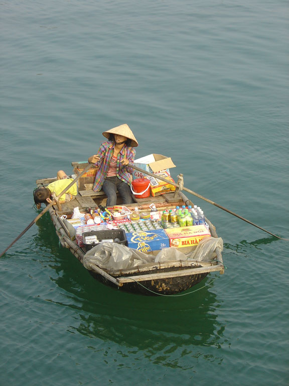 E haverão habitantes em Halong Bay? A resposta é sim. Originalmente havia apenas uma vila de pescadores, mas hoje existem cerca de 10. São 1600 pessoas que moram, como não podia deixar de ser, em casas flutuantes (como no Mekong) e que vivem da pesca, da aquacultura e, surpresa, do comércio.