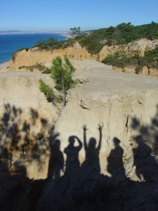 Iniciámos o percurso junto ao portão da NATO, espaço inserido na Mata dos Medos, constituída por pinheiro manso, Sabina-das-areias, Aroeira, rosmaninho e tomilho, e logo seguimos para a crista da Arriba Fóssil da Costa da Caparica, que é classificada como paisagem protegida pelo Instituto da Conservação da Natureza e Biodiversidade (ICNB).
