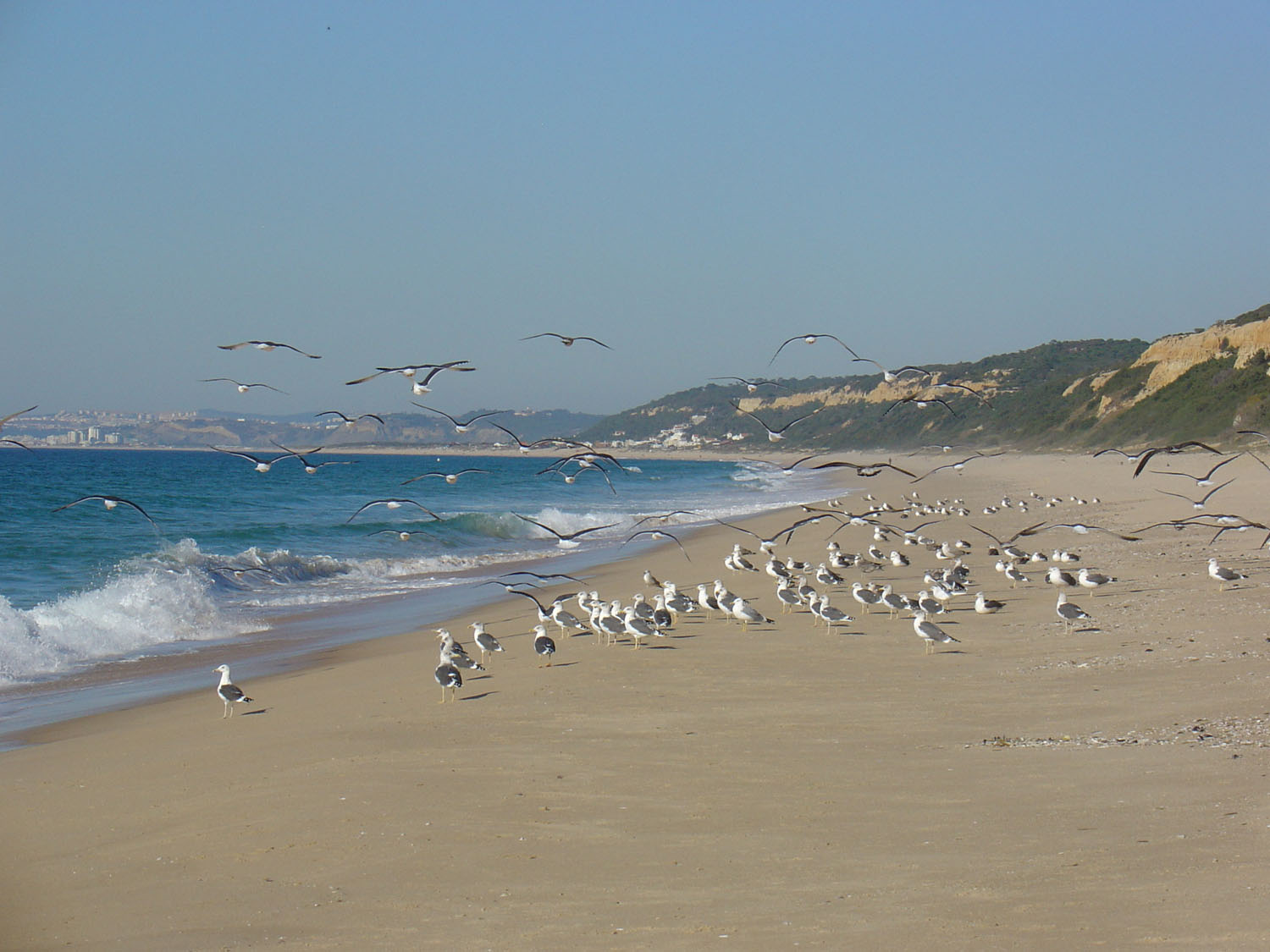 O regresso faz-se pela praia, sempre com a presença da imponente Arriba e em pleno convívio com as gaivotas.