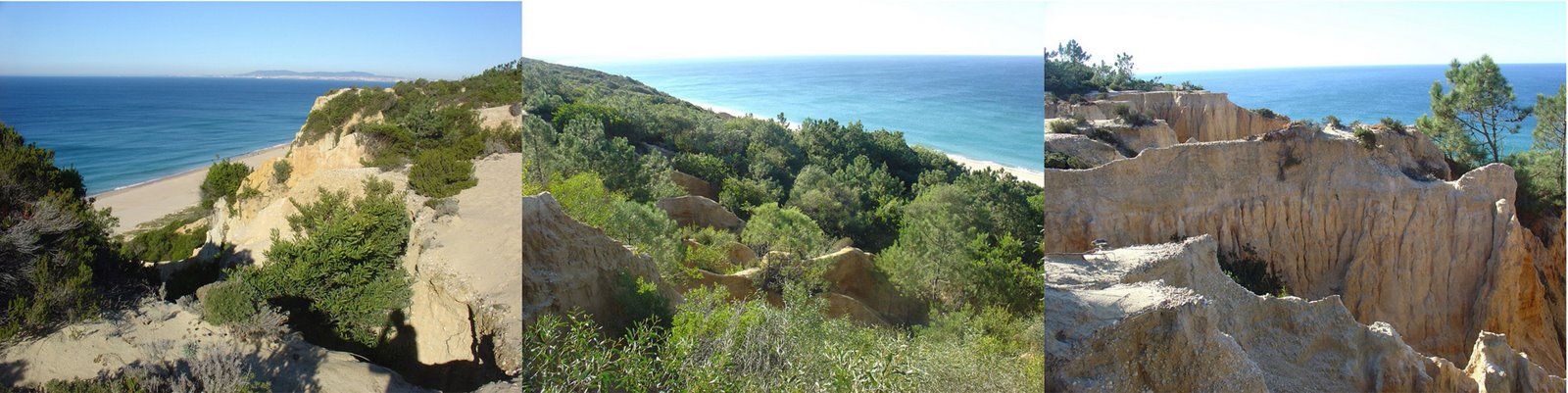 Á medida que nos aproximamos da Lagoa da Albufeira a forma abrupta da Arriba vai-se diluindo até se transformar em duna. A vegetação passa a ser mais rasteira.