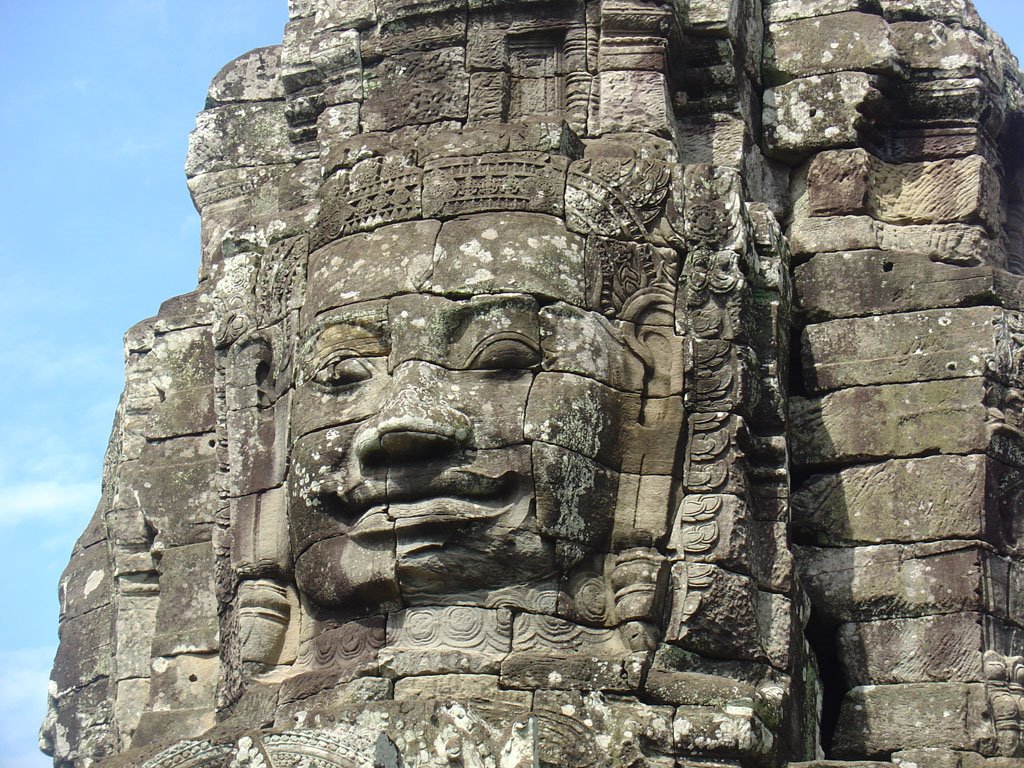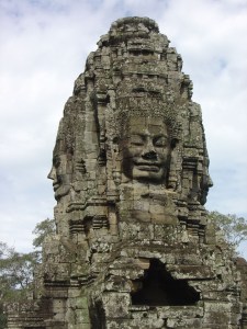 É o simbólico “sorriso de Angkor”.