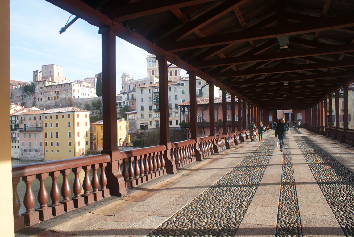 Bassano sofreu com as duas Grandes Guerras, mas a sua simbólica ponte de madeira sobre o Rio Brenta sobreviveu para continuar a servir de postal. Desenhada pelo arquitecto Andrea Palladio (nascido em Padúa e autor de inúmeras “villas” e palácios um pouco por toda a região do Veneto) em 1569, é um prazer caminhar sobre a ponte, com as montanhas e os edifícios amarelos e rosa da cidade como cenário. Caminhando pelas suas ruas, o prazer não esmorece, encontrando-se praças, cafezinhos e “bottegas” encantadoras.
