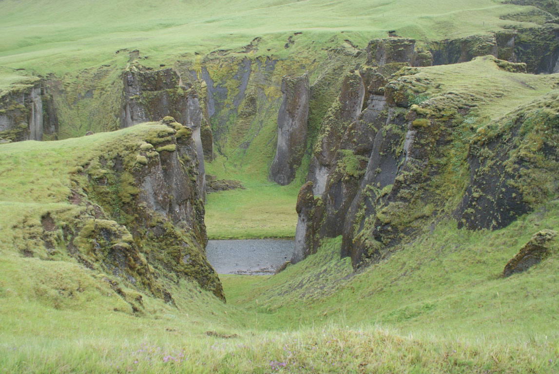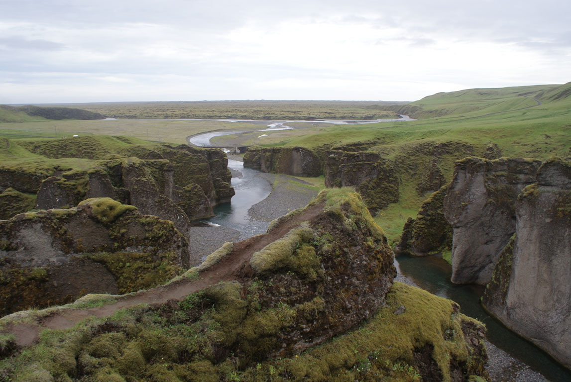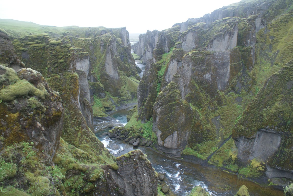 Na minha modestíssima opinião este Canyon leva o prémio nada modesto da mais surpreendente paisagem da Islândia (e são tantas!). Talvez por isso mesmo, por ser uma surpresa encontrar-se perto de um campo de lava uma fenda na terra de cerca de 2km de comprimento e uns bons 50 metros de altura nos pontos mais altos, numa combinação do verde mais vivo com o preto mais forte da rocha, sem esquecer a água cristalina lá bem em baixo. É preciso alguma coragem para nos aproximarmos dos penhascos enormes que nos fazem contemplar o Rio Fjadra como se estivéssemos num verdadeiro precipício. Mas vale a pena um passinho mais, assim como valeu a pena percorrermos toda a parte superior do Canyon, nós que tínhamos como objectivo inicial ver só como era a coisa. Se o nome é praticamente impossível de pronunciar e de memorizar, a lembrança da imagem essa ficará para sempre nas nossas mentes, com a feliz ajuda das fotos.