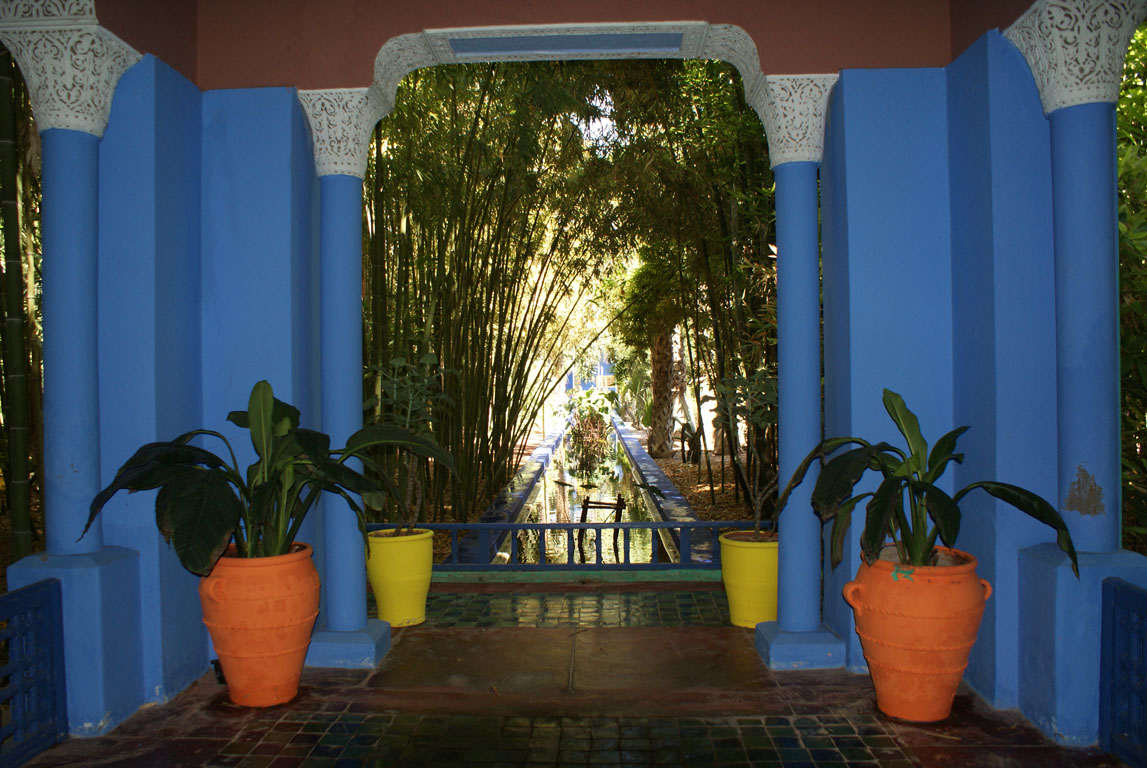 Já o Jardim Majorelle é outra história. Uma história que não se espera encontrar em Marrocos e, talvez, um pouco deslocada, mas uma grata história. Ou talvez não, se pensarmos que Marraquexe – e Marrocos – não estão na moda apenas hoje, mas pelo menos desde a década de 60 e 70 do século passado quando um rol quase infindável de peças da nossa cultura a adoptaram como sua. Daí que criatividade e surpresa não sejam em absoluto de excluir em Marraquexe. Porque é disso que se trata, de um jardim inventado em pleno norte de África. As cores azul e amarelo berrantes ficam, assim, como cores oficiais de Marraquexe no nosso imaginário, a par do omnipresente ocre.