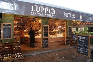 Lá em baixo, bem juntinho, fica o Virtualienmarkt, um mercado de rua diferente de todos aqueles a que estava acostumada. Dizer que é limpo é apenas uma repetição dos primeiros parágrafos, dizer que é chique será apenas uma constatação lógica daquilo que se espera da cidade mais rica da Alemanha. Mas, não, não é exactamente isso que se pensa quando se imagina um mercado de rua com comida para todos os gostos. Aqui os gostos serão os mais apurados, os olhares os mais delicados e os cheiros ficam para outras paragens. Não obstante, nesta praça há um dos muitos biergarten com mais uma das suas inconfundíveis torrezinhas toda rococó.