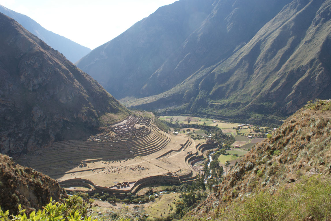 Vimos o primeiro sitio arqueológico do caminho desde cá de cima – o Llactapata, com os seus socalcos de terraços circulares.