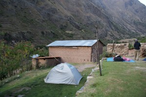 Chegamos ao acampamento, em Wayllabamba, a cerca de 3100m – os carregadores haviam chegado bem antes e já tinham as tendas montadas – e com pouca demora jantámos. Depois de um almoço de truta, à noite foi a vez de carne com arroz. Neste primeiro dia ficámos com a suspeita – todas as refeições seguintes confirmada – de que o cozinheiro era fantástico: comida variada, sempre com sopa, prato principal e sobremesa.
