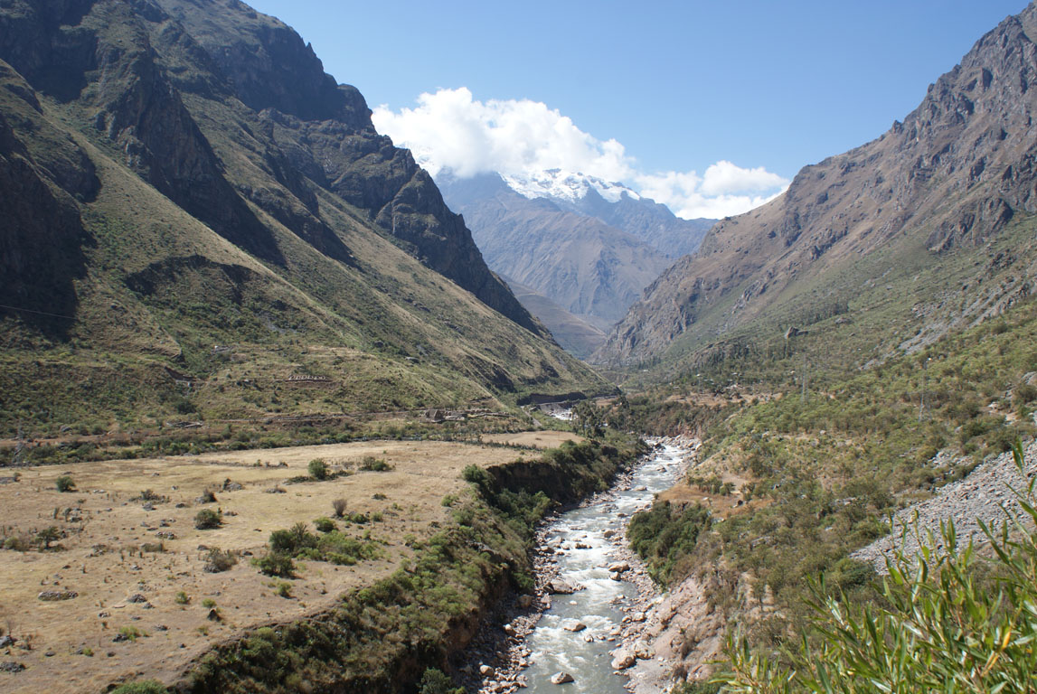 Neste primeiro dia alancámos com aquele peso todo e iniciamos os cerca de 13km e 5 horas pelas 11:00. Foi uma caminhada fácil, sem grandes subidas, com o rio Urubamba, que aqui toma o nome de Vilcanota, por companhia e banda sonora, ouvindo ora vagamente ora intensamente o som da sua água a correr, e as montanhas com o topo nevado a dar grandiosidade ao cenário. O vale é belíssimo.