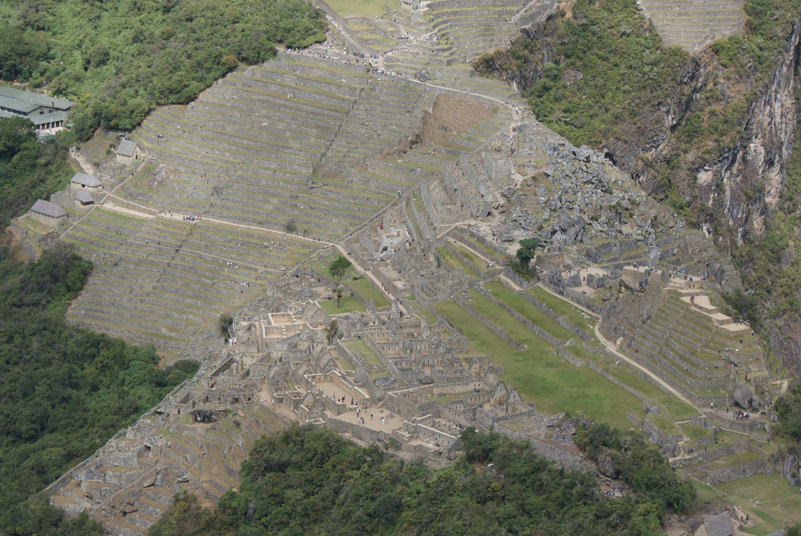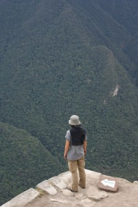 Assim, ao invés, e depois do reconhecimento de Machu Picchu, insatisfeitas com os poucos km percorridos, resolvemos subir à montanha de Wayna Picchu – a montanha mais famosa que fica atrás das ruínas nas fotos mais comuns de Machu Picchu. É um pouco difícil a subida de cerca de uma hora, por vezes com degraus estreitos e muito altos. Do topo a nossa vista alcança tudo: as montanhas à volta, o rio Urubamba, o caminho serpenteado de Aguas Calientes para Machu Picchu e, claro, a própria cidade perdida dos incas. A vontade de subir sempre mais um pouco para tirar “a” foto não cessa. Descobrir cada vez mais, ir mais além, sem deixar que o cansaço nos vença.