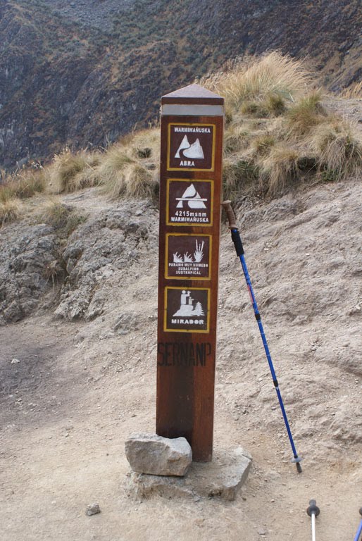 Foi, efectivamente penoso a espaços. A muitos espaços, para dizer a verdade. Iniciámos a caminhada às 7:30 e foram cerca de 5 horas e meia sempre a subir até chegarmos aos exactos 4215m de altitude (o ponto mais alto do caminho) até ao passo de Warmiwañusca, também conhecido como o “passo da mulher morta”, vá-se lá saber porquê. Literalmente, é ir até lá e receber os incentivos e os aplausos dos companheiros que vão chegando primeiro.