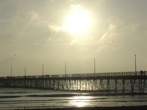 Optámos, então, por nos manter e dormir em Pacasmayo. Os seus locais reclamam para si o título de onda mais longa do país, em El Faro. Não conseguimos tirar conclusões a respeito. Mas conseguimos, sim, sentir a pacatez do seu malecón, com o pier antiquíssimo e nem sempre com as madeiras todas, facto plenamente compensado com a vista para as poucas mas lindas casas coloniais com vista para o Pacífico. É um bom sítio para se parar e deixar ficar a pensar na vida ou, simplesmente, não se pensar em nada. À noite fomos ao bar / restaurante “Puerto Escondido” – só podia ser nome de bar de surfista ao levar o nome da famosa onda mexicana – do Marcos, efectivamente surfista. Ouvíamos e íamos participando timidamente da conversa entre um brasileiro e um chileno, acompanhado de um gringo que não parecia falar espanhol, sobre as ondas do Peru e do Chile. O brasuca tinha vindo de mota, segundo a sua contabilidade para aí uns 6000km e ia voltar ao Brasil por Iquitos, porque por questões burocráticas só podia estar fora 3 meses. O chileno, esse, era um dos tais que parecia ter assentado arraiais por Pacasmayo, pela tal calmaria de Pacasmayo, assim como parecia passar os anos a assentar arraiais em outros pousos como este, porque os haverá e muitos pela costa peruana e, já agora, chilena. É só procurar e deixarmo-nos ficar, desviando ou integrando estes sítios que acabam por se tornar especiais nas nossas viagens, que não são só Machu Picchus. E ainda bem.