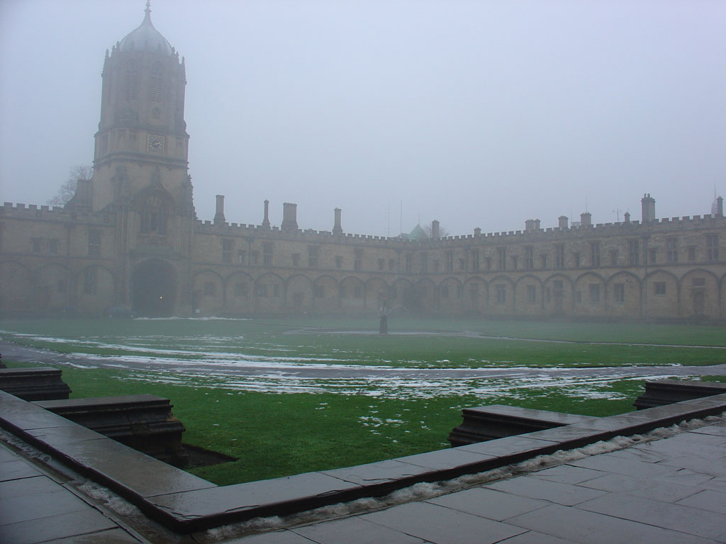 O Christ Church porque é provavelmente o maior e mais prestigiado colégio de Oxford, o que mais formados ali transformou em primeiros-ministros britânicos (parece que foram “só” treze). Faz parte do nosso imaginário de aventuras, desde a Alice no País das Maravilhas de Lewis Carroll até ao Harry Potter. Tem uma catedral lindíssima dentro do próprio colégio que é a diocese de Oxford. E tem um pátio – o quadrângulo ou Tom Quad – enorme, em conformidade com a grandeza de tudo o que nos rodeia.