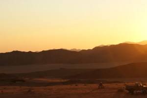 Depois de uma refeição típica e de um pouco de música tocada pelos rapazes da terra, não há muito mais a fazer se não ir dormir, não sem antes levantar o pescoço e olhos para o céu e vê-lo todo pejado de estrelas. Mas há que dormir dentro da tenda, pois apesar de termos tido sorte com as temperaturas, faz frio suficiente para não se arriscar a beleza de dormir ao relento. Ainda assim, a ida ao deserto, seja de noite ou de dia, é experiência a não perder na Jordânia.