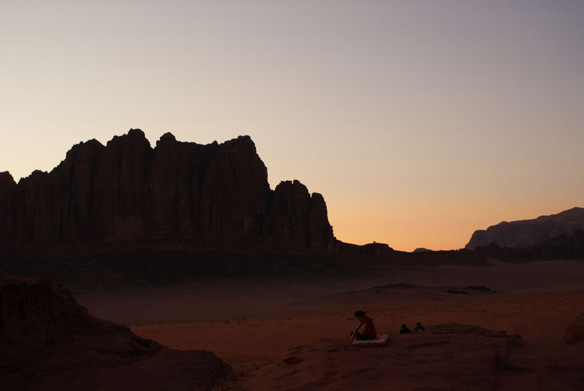 Depois de uma refeição típica e de um pouco de música tocada pelos rapazes da terra, não há muito mais a fazer se não ir dormir, não sem antes levantar o pescoço e olhos para o céu e vê-lo todo pejado de estrelas. Mas há que dormir dentro da tenda, pois apesar de termos tido sorte com as temperaturas, faz frio suficiente para não se arriscar a beleza de dormir ao relento. Ainda assim, a ida ao deserto, seja de noite ou de dia, é experiência a não perder na Jordânia.