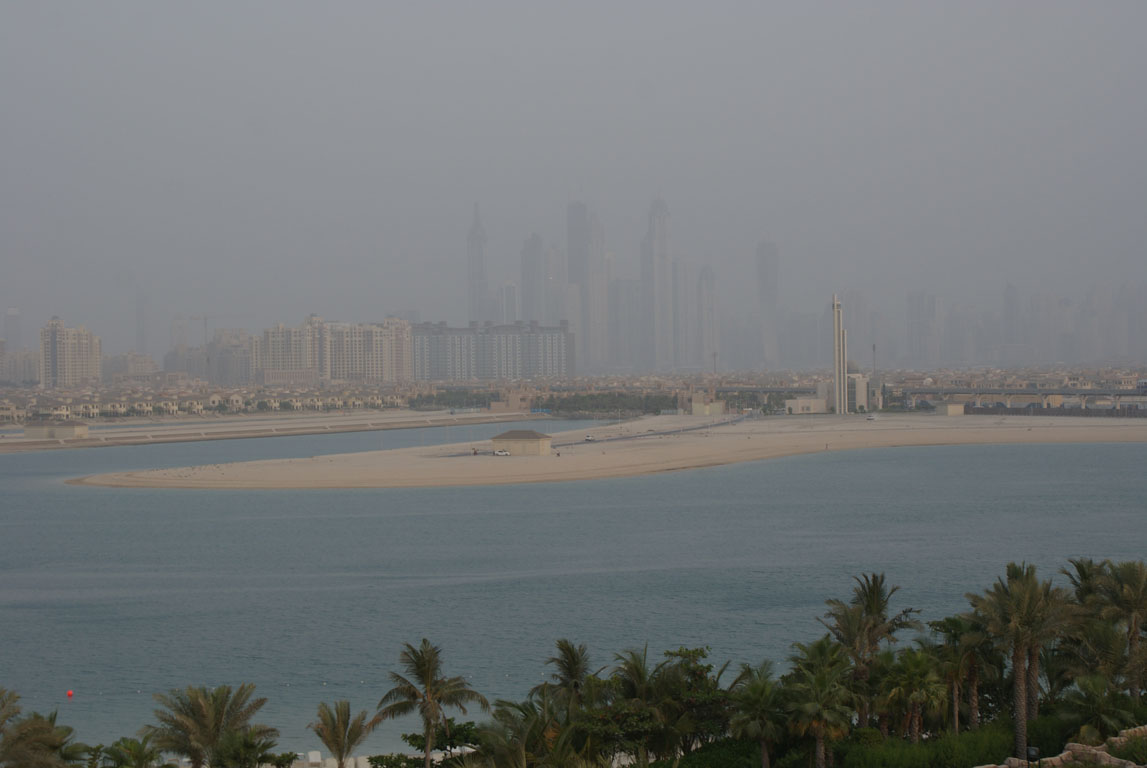 Uns quantos kms mais e chegamos aquela que é a maior loucura destes emires e sheiks. Da Palm Jumeirah temos uma percepção perfeita apenas do céu (ainda para mais a visibilidade na cidade nos dias em que lá estivemos foi miserável), mas mesmo chegando lá de táxi conseguimos apercebermo-nos da dimensão mirabolante deste projecto. Uma avenida imensa de cerca de 6 kms ladeada de prédios altíssimos, a que se seguem as famosas folhinhas da palmeira, tanto para a esquerda como para a direita, onde estão instaladas uma série de vilas com acesso directo para o mar, depois aparece-nos um túnel subterrâneo e submarítimo, enquanto acima da terra e do mar fica o famoso combóiozinho que também nos permite chegar ao destino final – o hotel Atlantis The Palm e o seu vizinho Aquaventure, um dos maiores atractivos da cidade.