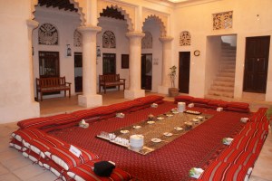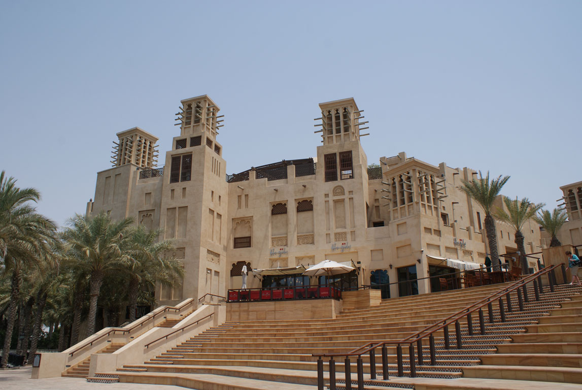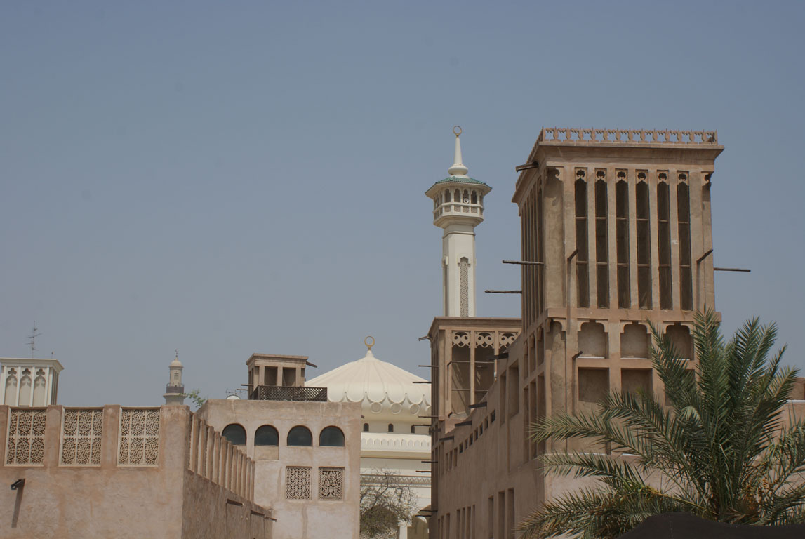 Optámos por ficar umas noites num hotel boutique, como está agora na moda, e outras num hotel de uma cadeia internacional. O XVA fica no bairro Bastaquia, um quarteirão “museu”, perto de uma mesquita e junto ao Creek, onde os barcos fazem monotonamente a passagem de uma margem da cidade para a outra. Do outro lado fica a cidade mais antiga, Deira, dos prédios com uma altura decente, dos souks, do centro financeiro que agora se vai estendendo à medida que também a cidade se estende. Aqui, à semelhança do bairro Bastaquia e do Shindagha, encontramos outro dos poucos exemplares ainda sobreviventes da arquitectura original desta parte do Golfo. Aproveitando antigas escolas e antigas casas de senhores endinheirados dos tempos onde a actividade principal era a pesca da pérola, conseguimo-nos aperceber como era a disposição e alguma da decoração desses edifícios. O pátio não falta nunca, assim como não falta a torre característica em forma de quadrado e que parece ter espinhos. Como o calor é intenso, este desenho permite que o vento entre e circule, sendo depois distribuído para os andares inferiores. Se dá resultado ou não, não o sei, mas que visualmente estas torres são lindas, aí isso são.