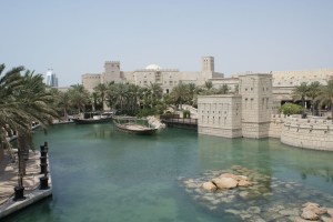 Um pouco mais adiante fica o Madinat Jumeirah, mais um centro comercial, mas desta vez um bem diferente e, digamos, inspirador. Pretende recriar uma Veneza e não fosse os rapazes que conduzem os barcos não cantarem o “sole mio” e quase que o conseguia.