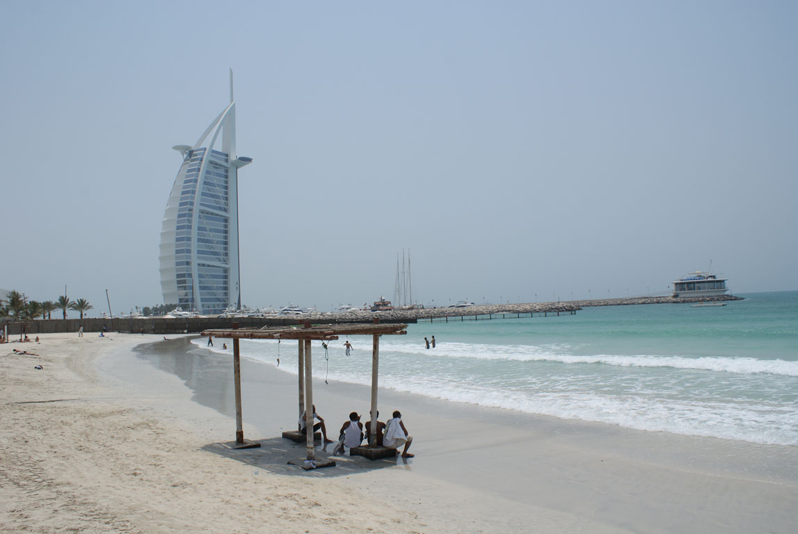 Também perto de uma praia pública fica o icónico Burj al-Arab, provavelmente um dos edifícios mais bonitos do mundo e, talvez por isso, dos mais reconhecidos. A nós faz-nos ter quase a certeza de que a nossa Torre Vasco da Gama, na Expo, nele se inspirou.