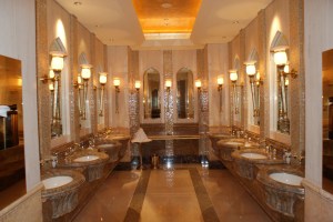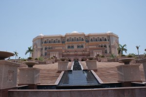 No fim da corniche, que percorremos corajosamente durante uns kms sob um calor abrasador (ficamos com as camisolas tão coladinhas ao corpo que se fosse em Portugal de certeza que ganharíamos um convite especial para participar no concurso Miss t-shirt molhada do Correio da Manhã), fica o Emirates Palace, o tal que, se não estivéssemos em terra de petróleo em abundância, só podia ser a residência de um governante. Mas não, é um hotel cuja visita é atracção turística imperdível. Os seus salões são de um luxo só, os seus tectos hipnotizam e as suas casas de banho… bem, qualquer uma fica uma verdadeira bimba a olhar para aquelas torneiras e balcões acompanhados de ouro.