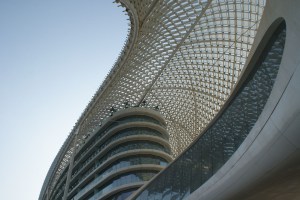 Como havia referido atrás, a Grande Mesquita de Abu Dhabi é a maior do mundo tirando a de Meca e Medina na Arábia Saudita. Aqui parece que entramos no reino do mármore e do ouro. Mas o branco intenso é o que domina esta imensa estrutura de minaretes, arcos e colunas, corredores, terraços e salas de oração, a uns quantos kms do centro da cidade, cerca de uma hora de autocarro. Aqui encontramos um mausoléu com o túmulo do sheik Zayed Bin Sultan Al Nahayan, onde um cântico de um grupo de 10 imans que vão lendo o Corão 24 horas por dia, todos os dias, o acompanha. Para além desta ser a maior Mesquita é também das poucas que os não muçulmanos podem visitar. As não muçulmanas, mesmo vestidas de uma forma bem comportada, observando as advertências do conservadorismo do Emirado, são obrigadas a usar uma veste que nos cobre da cabeça aos pés de um preto mais preto do que a minha avó viúva usa. E se o véu cai, como aconteceu insistentes vezes, e nos deixa uma ponta do cabelo à mostra, lá vem prontamente o senhor da Mesquita que zela pelos bons costumes avisar-nos para o compormos.