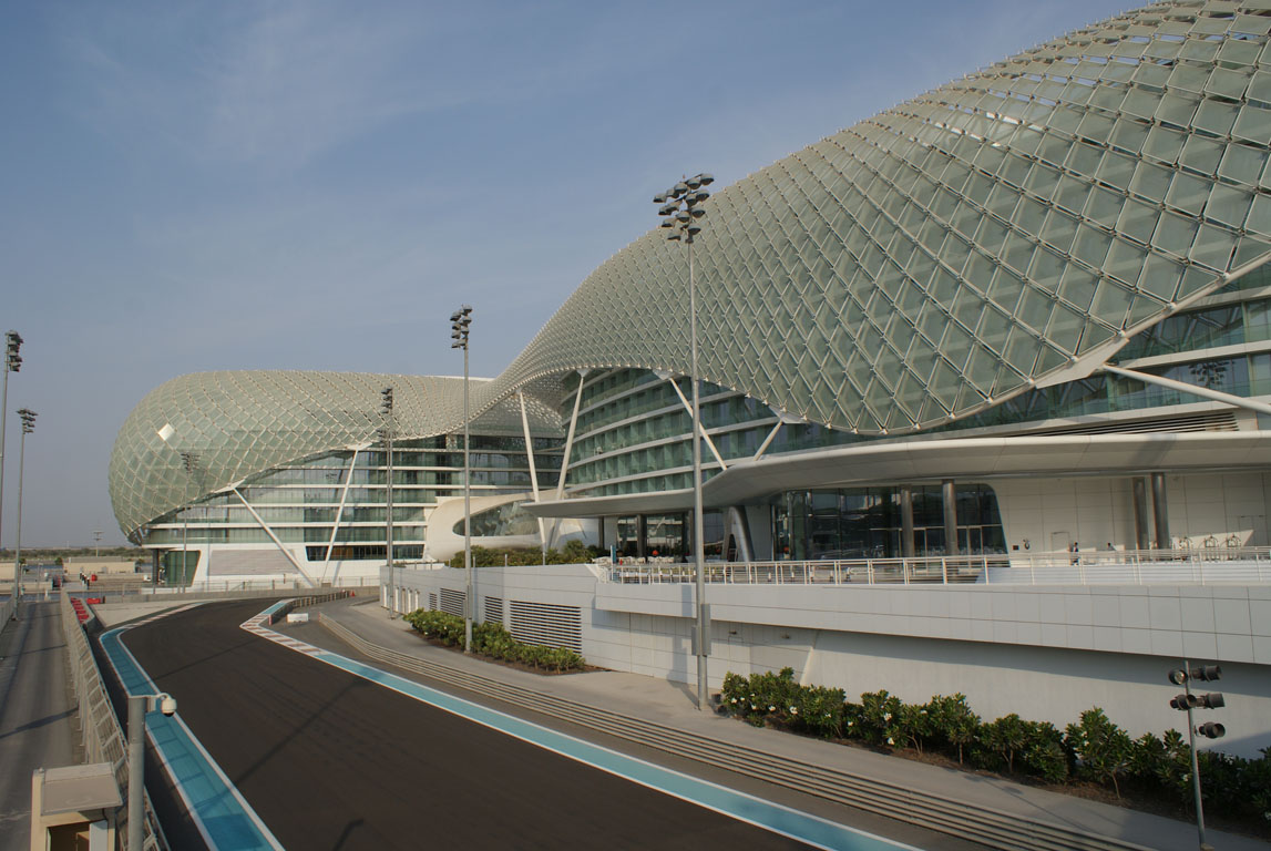 Não muito longe dali, na direcção contrária ao centro da cidade, fica a tal ilha artificial que acolhe um GP de F1, a Yas Island. O circuito está instalado numa marina, com vilas e um hotel no meio. Um hotel lindíssimo, há que acrescentar. Para quem gosta do desporto automobilístico, deve ser fantástico estar no deck de um barco, na varanda de uma vila ou no terraço do hotel a ver os carros passar em alta velocidade com o seu vruumm, vruumm característico.