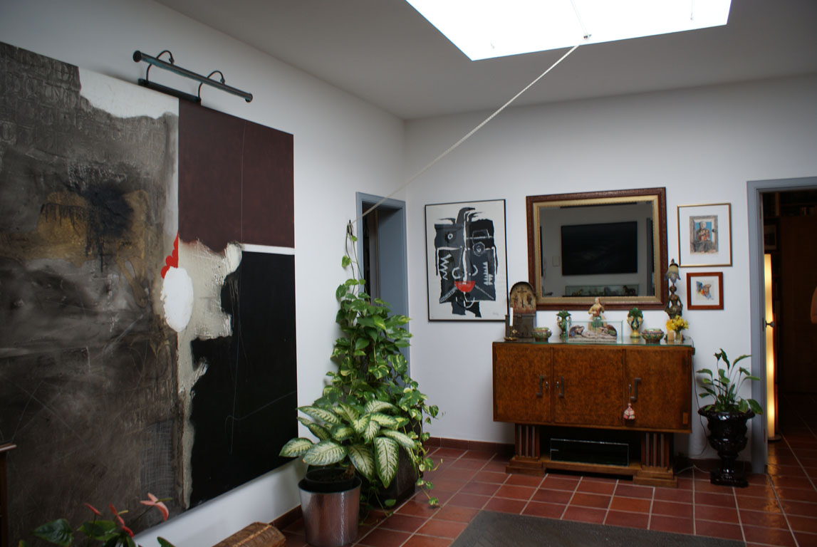 À entrada, no hall, vemos uma série de livros, sobre cozinha, ervas aromáticas, provérbios chineses, um pouco de tudo. Até 2005, data em que foi criada a Biblioteca de Saramago, num edifício do outro lado da rua, os livros estavam espalhados por toda a casa. Agora também, mas não aos magotes, nem no chão nem no tecto. Ainda no hall, referência da guia que nos conduziu na visita para as muitas peças sacras visíveis – o escritor não era um homem religioso, mas era interessado nas religiões – e para a colecção de cavalos deste ribatejano que em pequeno, sem posses, não pode nunca montar.