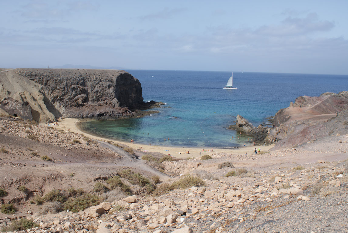 Este dia seguimos para sudoeste rumo às praias da Punta del Papagayo, no Monumento Natural los Ajaches. A entrada de carro por aqui é paga e uma estrada de terra batida vai-nos distribuindo por várias praias, algumas delas, como a do Papagayo, pequeninas e encravadinhas numa baia.