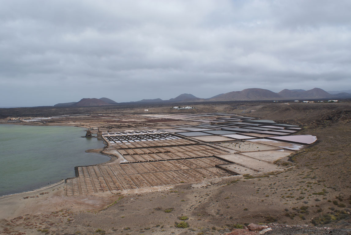 Subindo a norte, ao fim de uns poucos kms vamos dar às Salinas de Janubio, com rectângulos de salinas com cores para todos os gostos, e a uma praia de mesmo nome de areia preta, cortesia da lava.