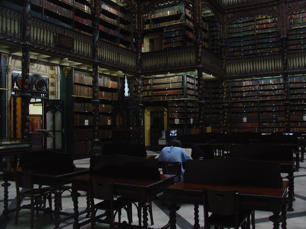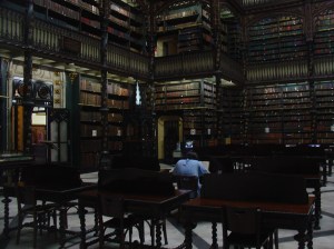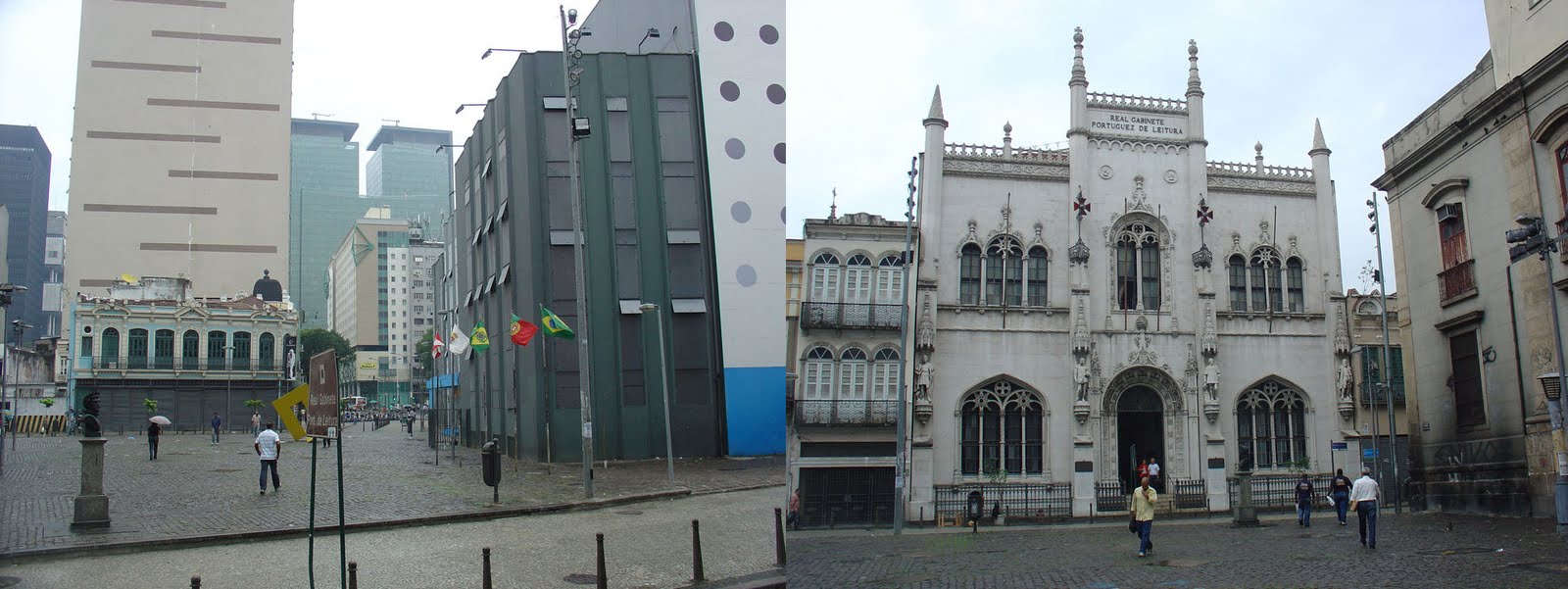 A arquitectura no centro do Rio é uma autêntica misturada de estilos, o antigo com o velho, o moderno com o novo. Um exemplo gritante desta confusa mescla, onde o resultado é pavoroso, é o da Praça onde fica o Real Gabinete de Leitura Português. Este edifício, absolutamente deslumbrante no seu interior, tem a fachada em estilo manuelino; à sua frente temos um 2 pisos que mais parece que um furacão lhe passou adiante sem ter conseguido arrancar-lhe o mamarracho que lhe fica atrás; e… que é aquele caixote horrendo ali mesmo à beira? De fugir, não fosse dar-se o caso do Real Gabinete ser uma daquelas visitas que valem bem uma vida.