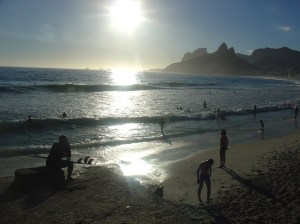 Porém, nenhum dia ficaria completo com sucesso sem o por do sol no Arpoador. Faria mês que vem 10 anos da última vez que estive aqui sentada com a família toda reunida pronta a bater palmas no momento em que o sol se esconde debaixo de água. Desde esse dia que sonhava repetir a experiência e ontem quase que tinha chorado quando uma chuvada caiu à tarde precisamente quando estava no Arpex. Ou se calhar chorei mesmo e confundi as lágrimas com a chuva. Mas hoje não. Ipanema e Leblon com umas cores soberbas com o Morro dos Dois Irmãos como comparsa e a Pedra da Gávea a assistir. Os surfistas no Arpoador são muito mais do que figurantes. O sol cai no mar, à esquerda dos Dois Irmãos, e todo o cenário vai mudando de tons. Quando o sol se esconde definitivamente e as palmas das centenas de presentes sabem reconhecer o feito, não dá nenhuma vontade de ir embora, só de continuar ali sentada na Pedra do Arpoador a imaginar que Deus é realmente brasileiro e que Cristo escolheu bem o seu poiso e também faz questão de testemunhar este por do sol.