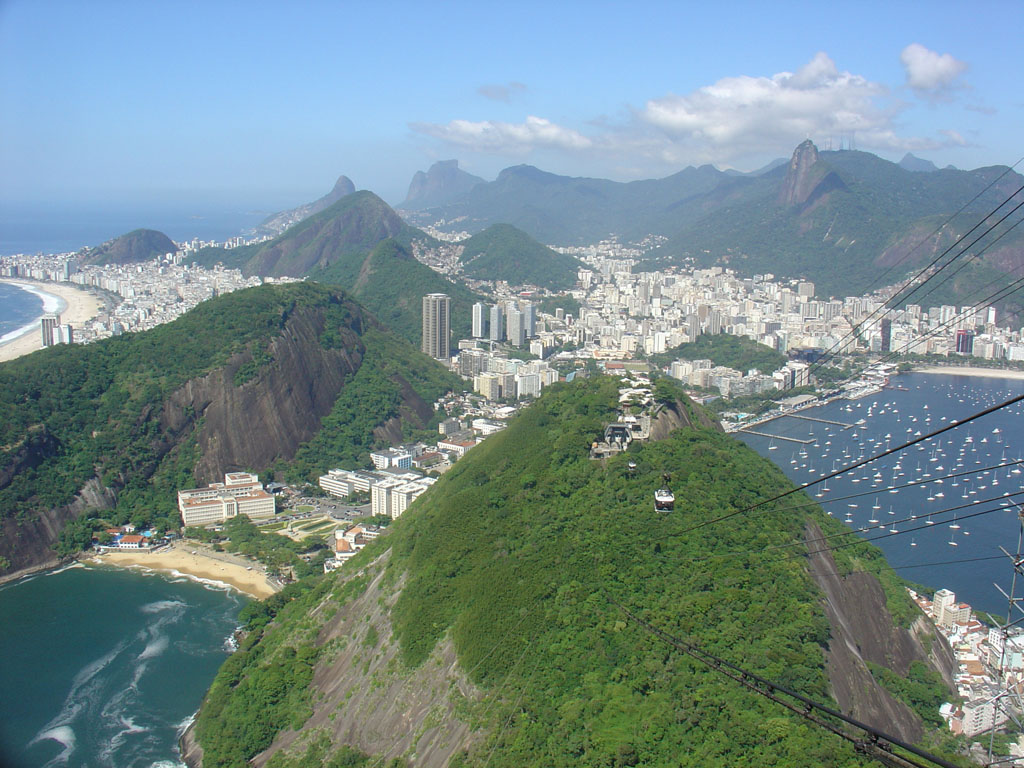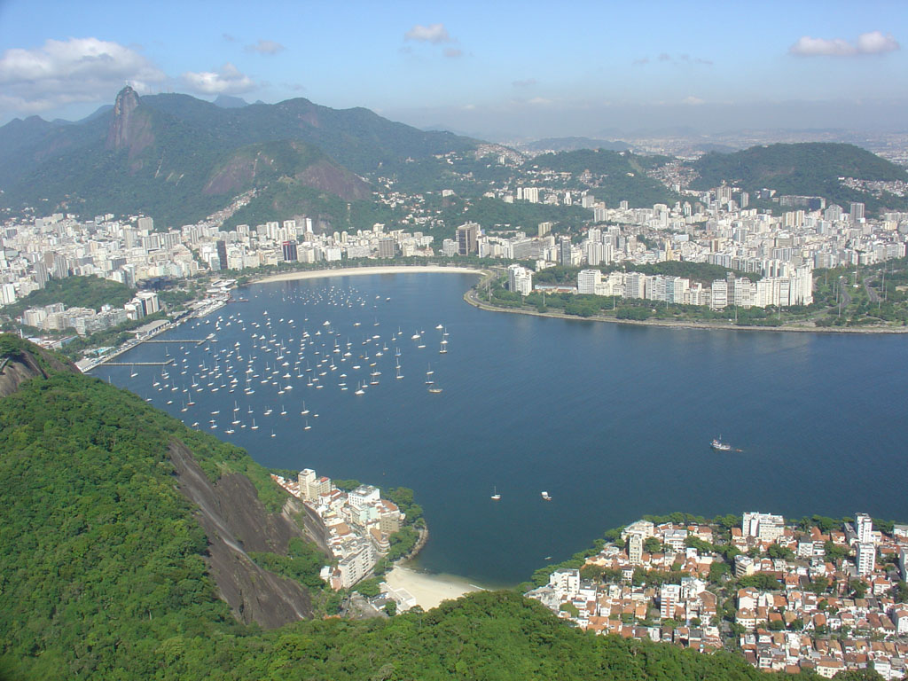 Na primeira paragem, no topo do Morro da Urca, vê-mos logo o Cristo lá em cima com a Baia da Guanabara cá em baixo, com os seus barquinhos estacionados nas águas plácidas, como diz o hino brasileiro ainda que se refira a outras águas.