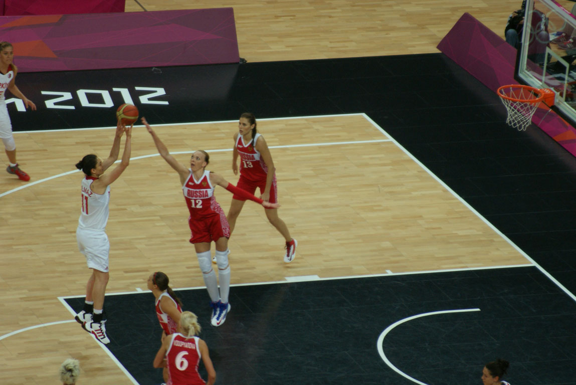 O evento para o qual nos tocou bilhetes foi os quartos de final do basquete feminino. Tivemos direito a ver dois jogos na última fila, lá bem em cima. Mas como o pavilhão, apesar de grande, era bem aconchegante, tínhamos uma excelente visão das meninas a jogarem lá em baixo, ouvindo-as trocarem a táctica e quase vendo os seus pingos de suor.