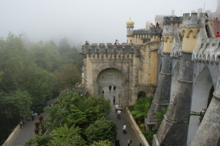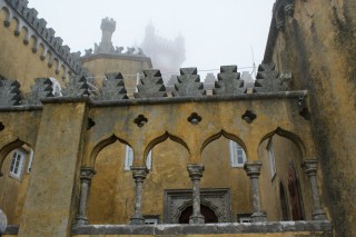 O Palácio da Pena foi mandado recuperar no século XVIII por D. Fernando II, o rei consorte por via do casamento com D. Maria II. Instalado a 500 metros de altitude, no topo da serra de Sintra, o projecto de arquitectura aproveitou parte das ruínas do antigo mosteiro de Jerónimo de Nossa Sra da Pena, e foi buscar inspiração nos palácios da Baviera. É o maior exemplo da arquitectura romântica em Portugal, mas nele convivem alegremente motivos mouriscos, góticos e manuelinos. As torres, e um pouco por ali e aqui, deixe o clima ou não, são cheias de cores e fantasia.